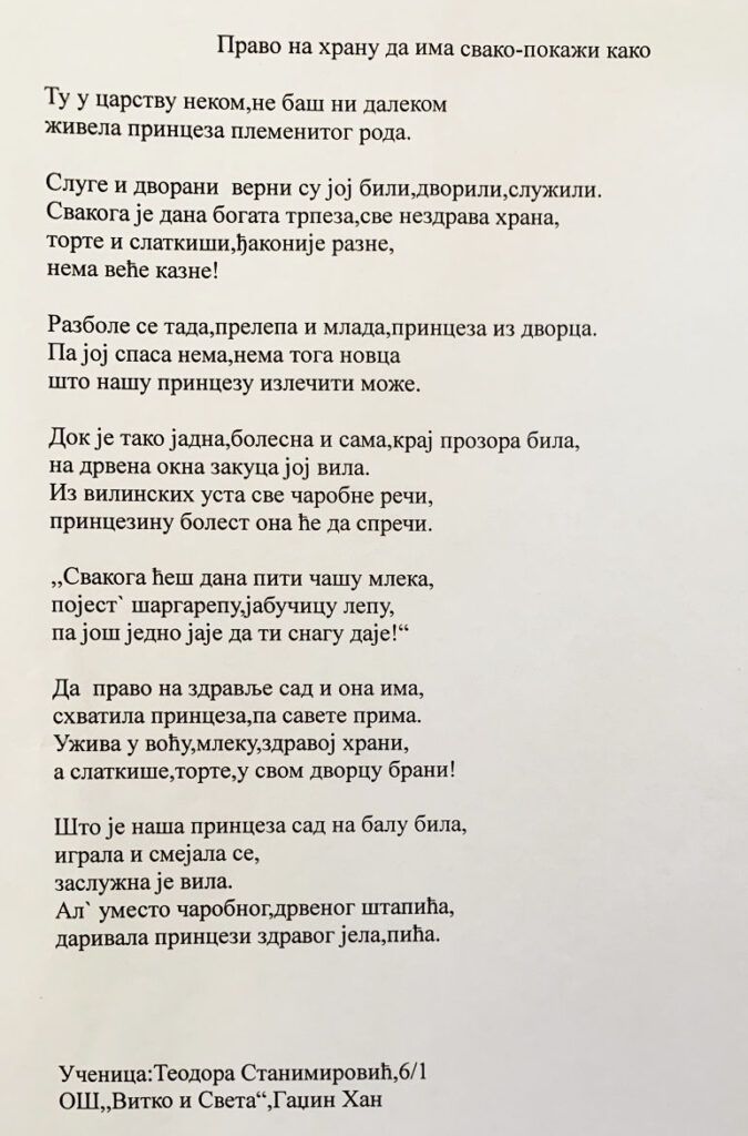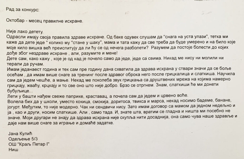 Најбољи радови у кампањи «Октобар месец правилне исхране 2025» Тема: „Право на храну има свако –покажи како“